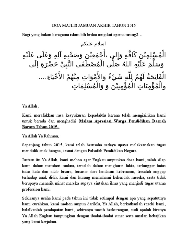 Akhir Tahun Doa Majlis Jamuan Akhir Tahun. Interested in flipbooks about JAMUAN AKHIR TAHUN PERSARAAN 2020. Membaca Doa Akhir Tahun Sesuai Waktunya.